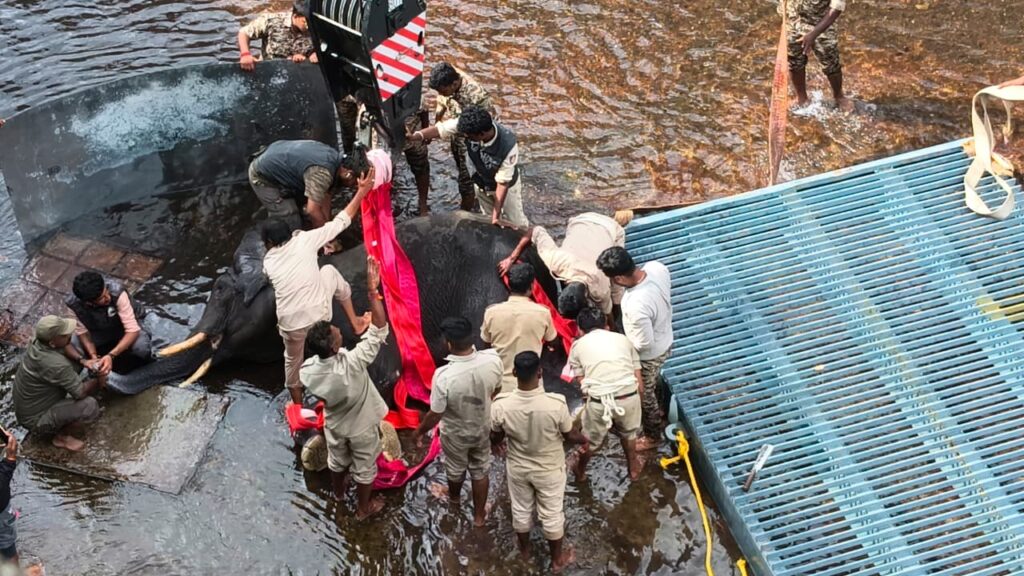 Forest watchers and vets stayed at the site throughout, preventing the elephant from collapsing or being pulled under water by the strong currents. “The height of the canal and the force of the water made it a very dangerous operation,” an officer at the site said.