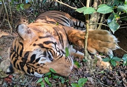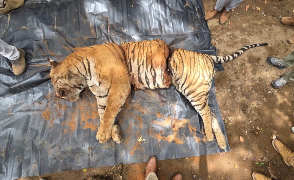 On 16th, the forest staff found a dead tiger after it was trapped in a snare near a tree in the Kecchatira Coffee Estate on the roadside of Srimangala Bhagavathy Temple in Chettalli, Kushalnagar taluk, Kodagu district.
