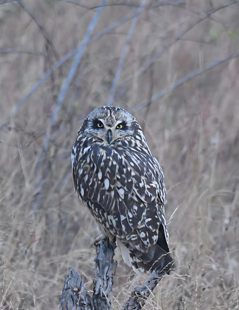 Long back, the documentation of the short-eared owl has been done in Hessarghatta, Bengaluru but not as a regular sighting in southern parts of India This owl species usually prefers grasslands and lakebeds. The short-eared owls are known for their unique and special behavior be it their flight display or hunting abilities or courtship display.