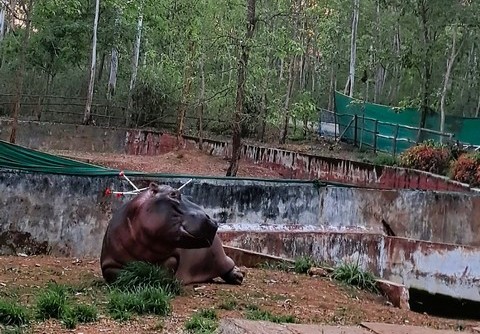 According to a press statement released by the Executive Director, Shivamogga Zoo, Lion & Tiger Safari, Tyavarekoppa on 14.04.2026, Hamsini, the 12-year-old Hippopotamus died at 3.08 pm on April 14, 2026 due to acute sepsis and a failed pregnancy.