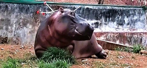 Hamsini, this massive Hippopotamus which died had become nationally famous as she had attacked Zoo Vet Dr Sameeksha Reddy (who died of her injuries) while checking on the hippo inside her enclosure, last month.